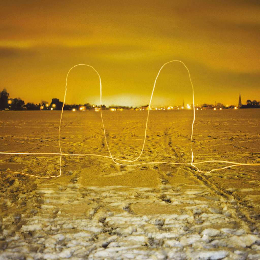 It’s a light trail made by a torch, made to look like it was going around two people. I wanted to show absence. I used one person, who moved sideways after the first pass with the torch to make space for the second outline.